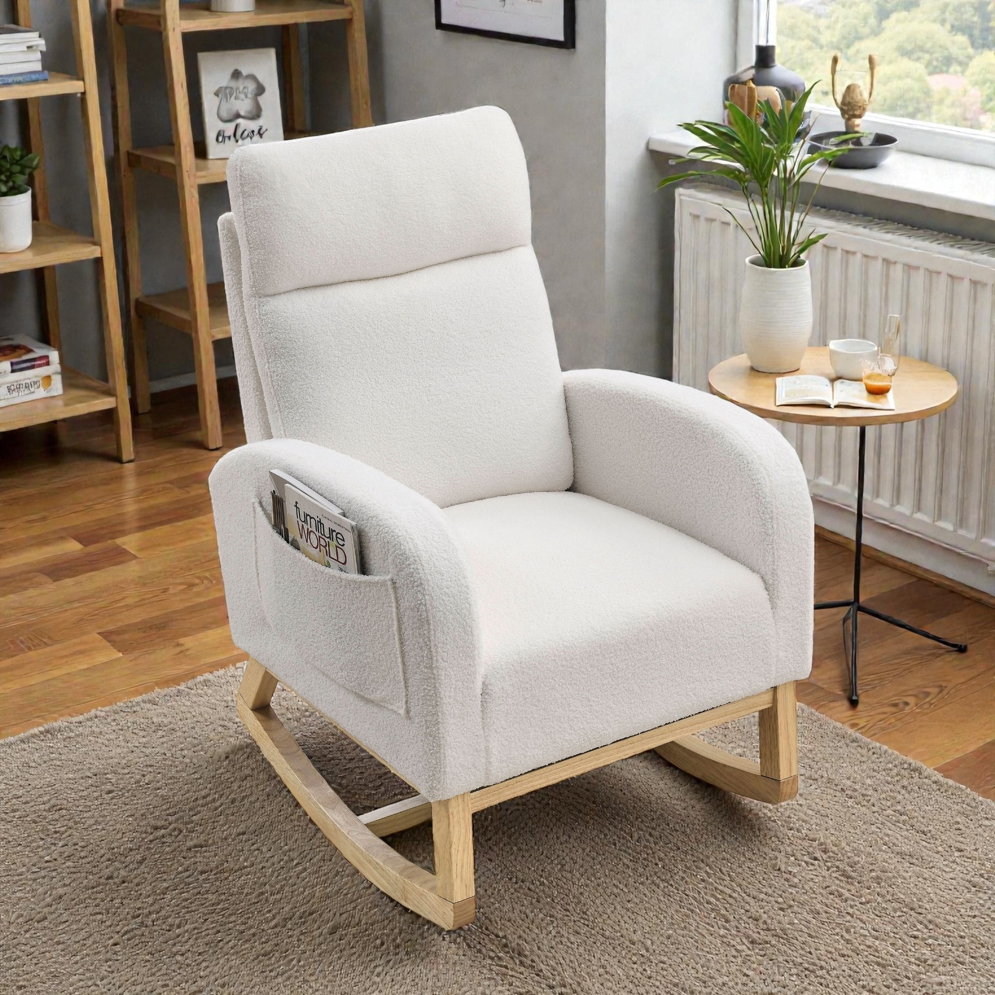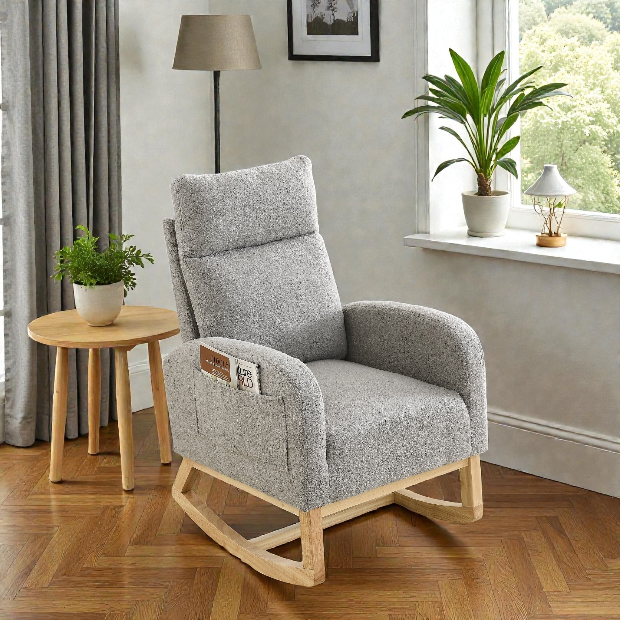High Back Rocking Accent Chair, Upholstered Lounge Armchair with Side Storage Pockets, Desk Chair, Office Chair for Living Room