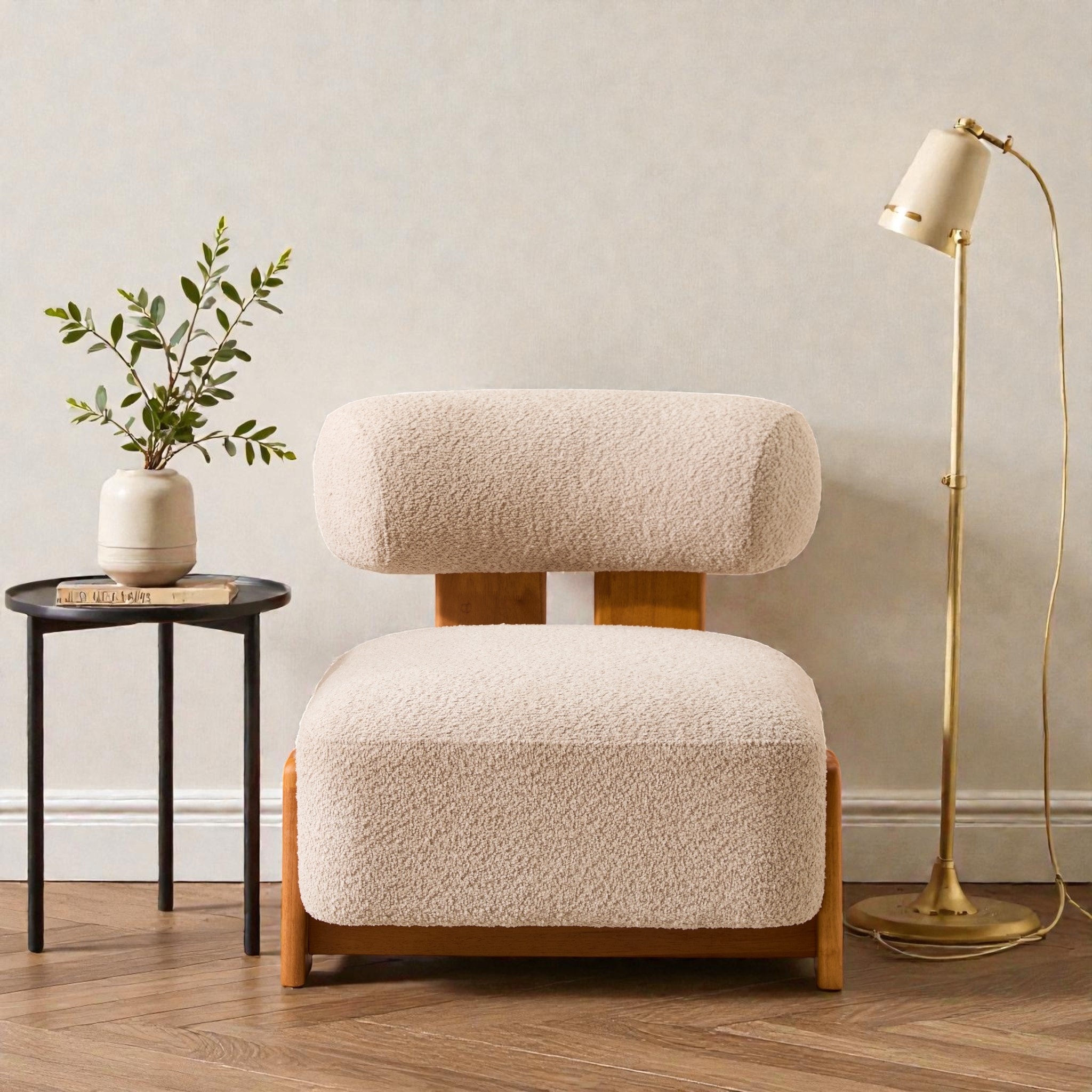 Boucle Lounge Accent Chair with Solid Wood Frame, Rolled Backrest Upholstered Armchair, Desk Chair, Office Chair for Living