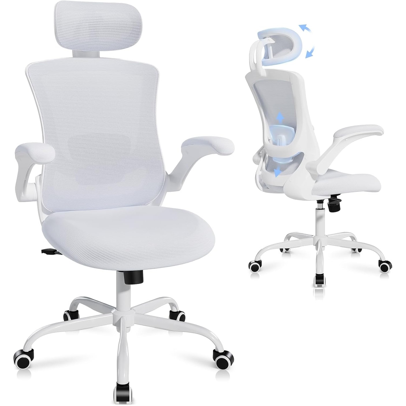 Ergonomic Office Desk Computer Chair, Comfy High Back Swivel Rolling Home Mesh Gaming Chairs, Lumbar Support, Flip-up Arms