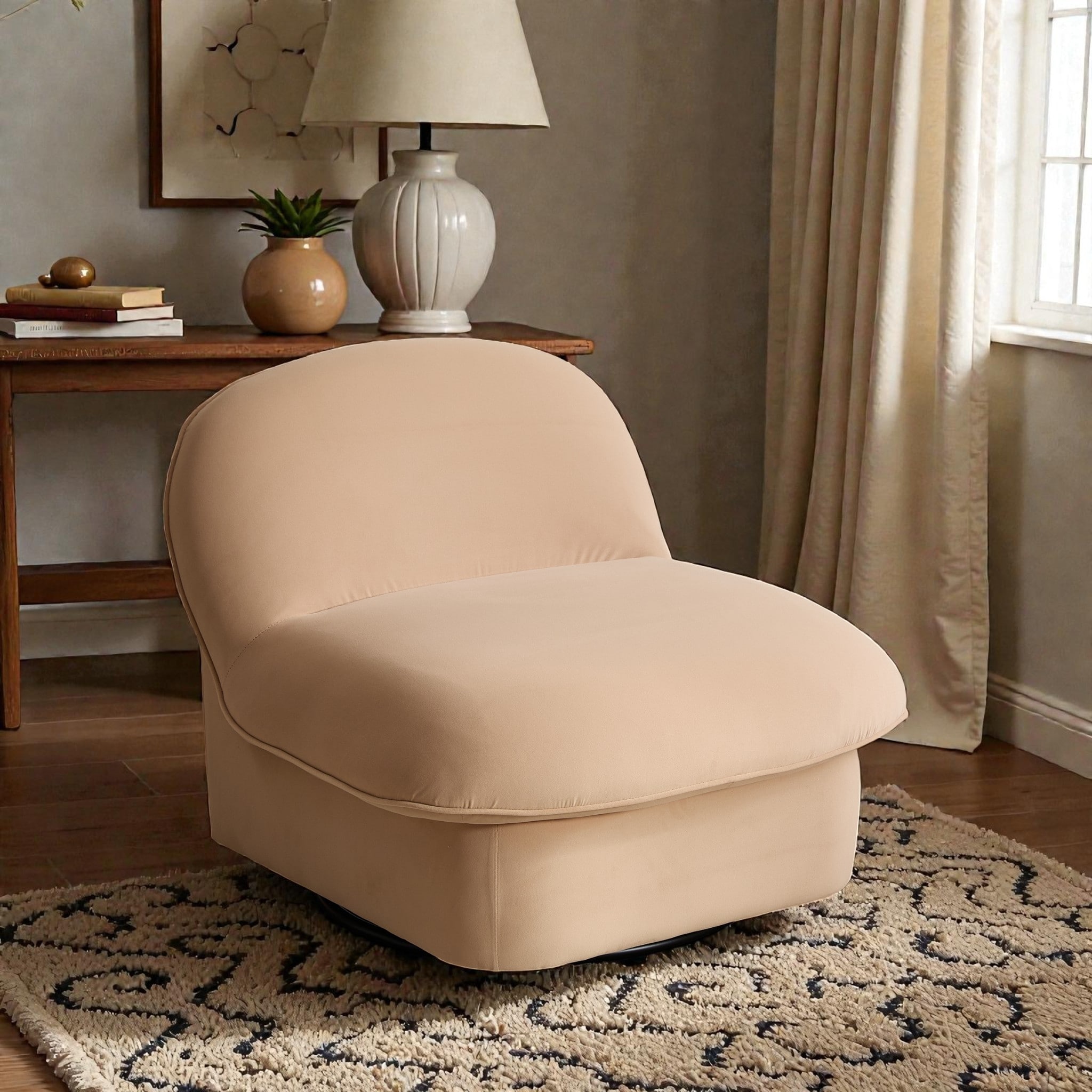 360 Degree Swivel Accent Chair with Metal Base, Velvet Upholstered Pumpkin Lounge Chair with Foam Cushion for Living Room