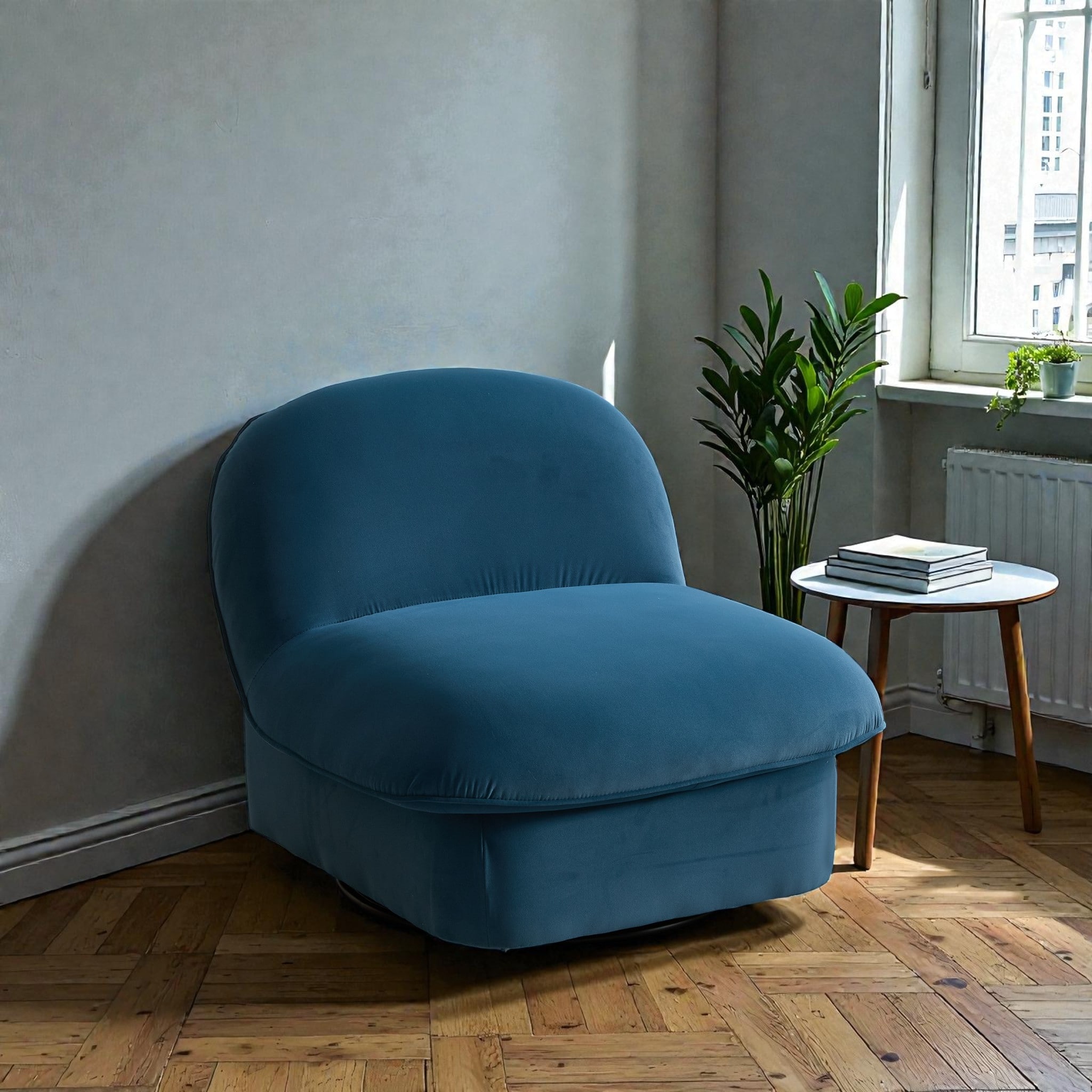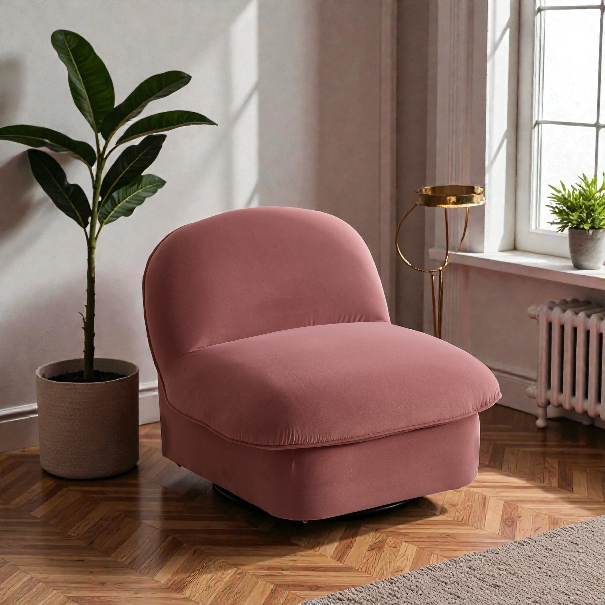 360 Degree Swivel Accent Chair with Metal Base, Velvet Upholstered Pumpkin Lounge Chair with Foam Cushion for Living Room
