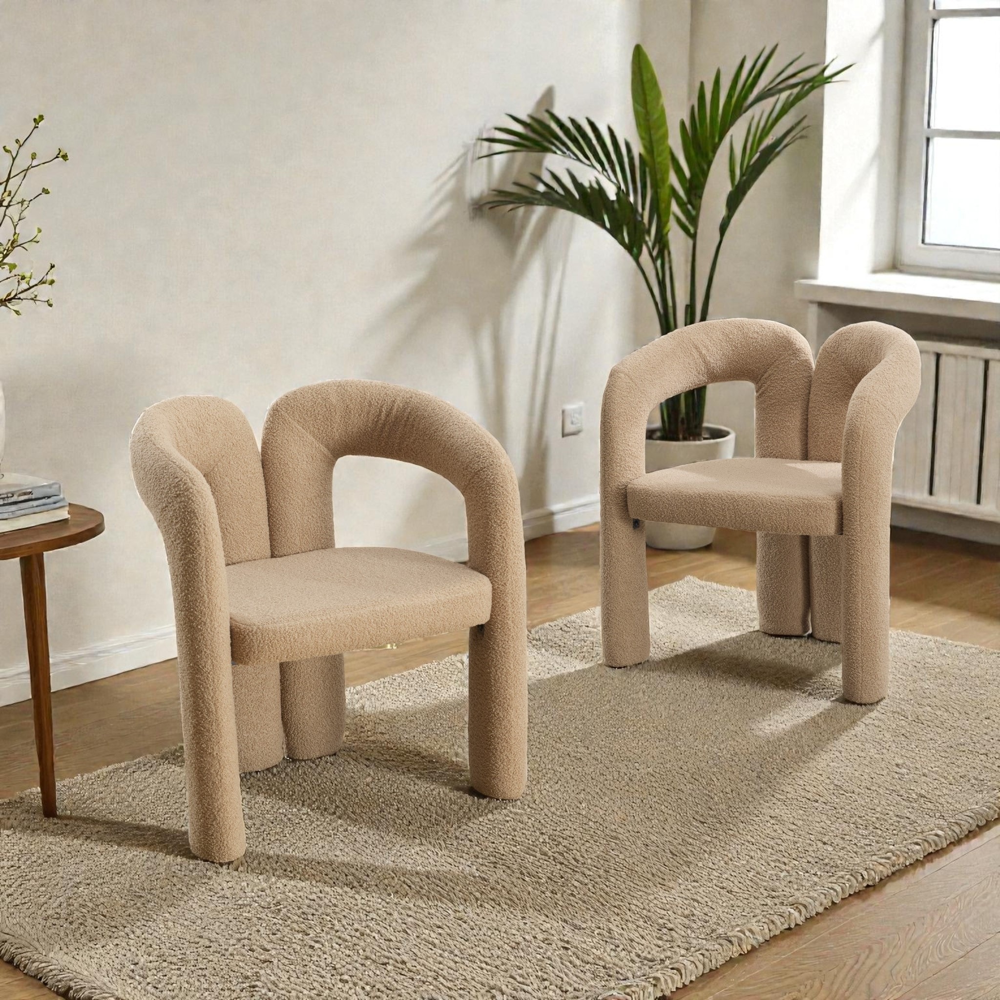Set of 2 Teddy Fabric Barrel Dining Chairs, Upholstered Accent Armchairs with Curved Back, Office Chair for Kitchen Living Room