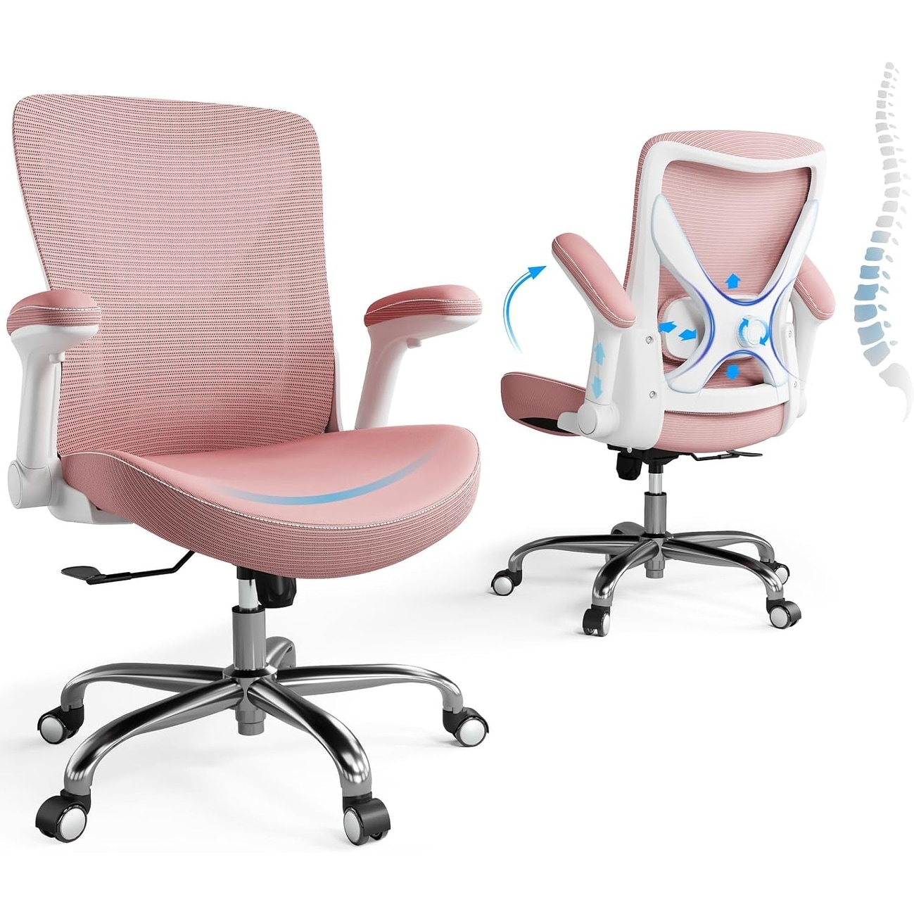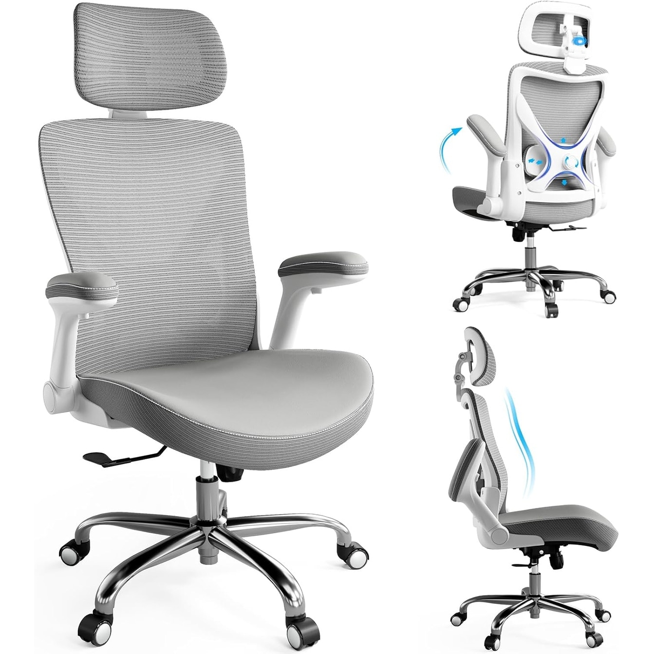 Ergonomic Mesh Office Chair with Adjustable Lumbar Support, Flip-Up Arms and 360° Swivel - White Grey