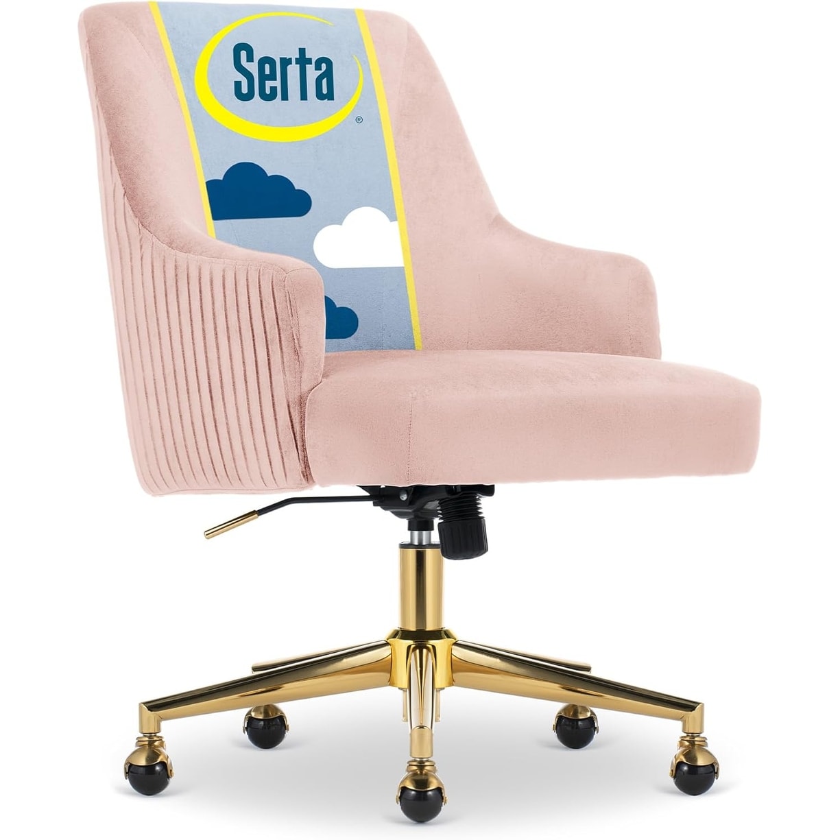Modern Velvet Office Chair with Gold Base, Mid-Back Design, Padded Armrests & Swivel Wheels for Home or Office