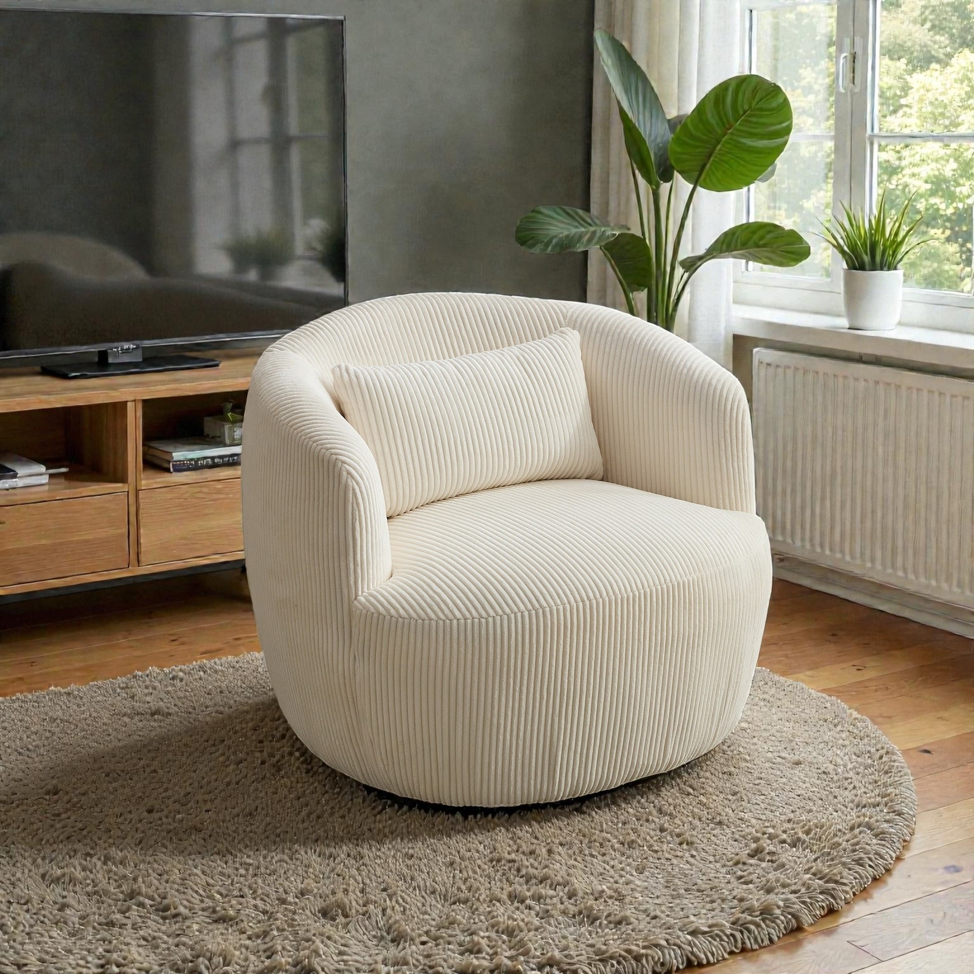 Corduroy Swivel Barrel Accent Chair with Pillow, 360 Degree Circular Armchair, Office Chair for Living Room Bedroom Office