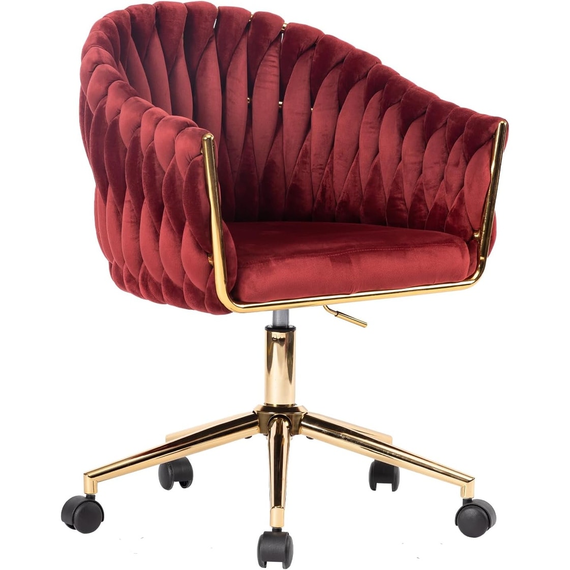 Modern Velvet Adjustable Office Chair with Hand-Woven Backrest, Golden Metal Base, and High-Resilience Sponge Seat
