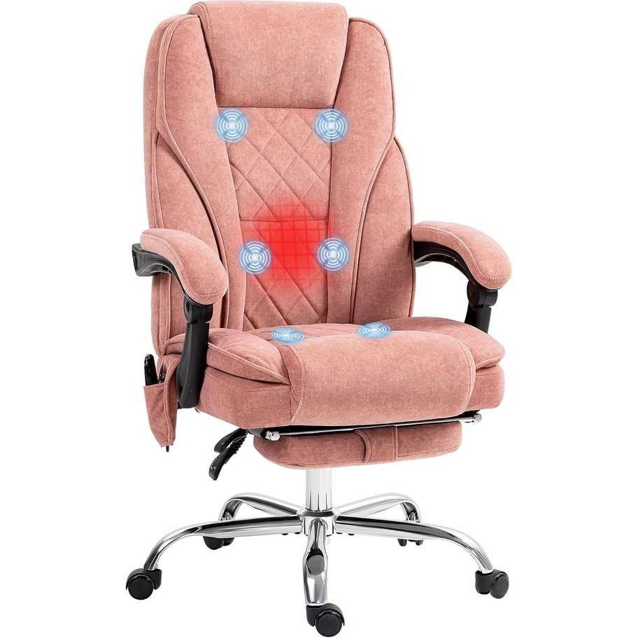 Massage Office Chair with Foot Rest, 6 Vibration Points, Heat, Reclining Backrest, Swivel Wheels, Adjustable Height, Pink
