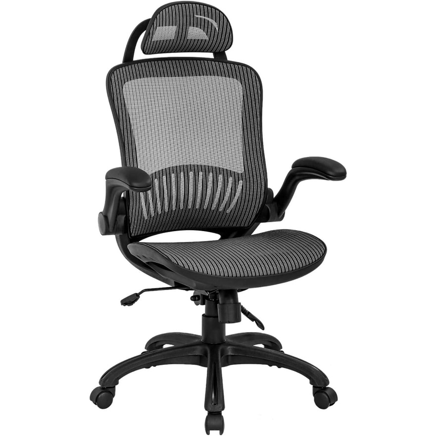 Ergonomic Mesh Office Chair with Lumbar Support, Adjustable Headrest and Flip-Up Arms, Swivel Rolling Task Chair for Adults