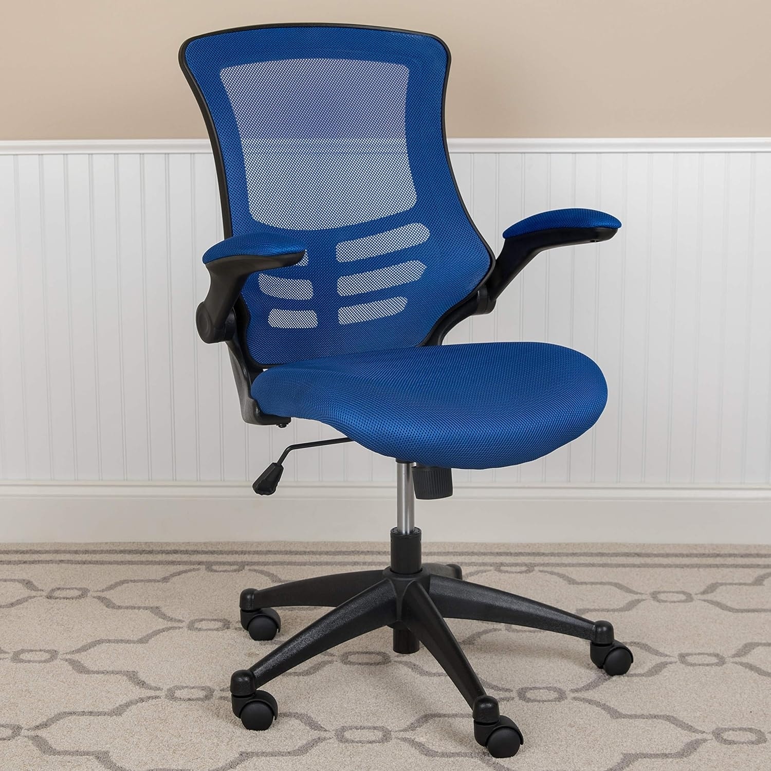 Mid-Back Blue Mesh Swivel Ergonomic Office Chair with Flip-Up Arms