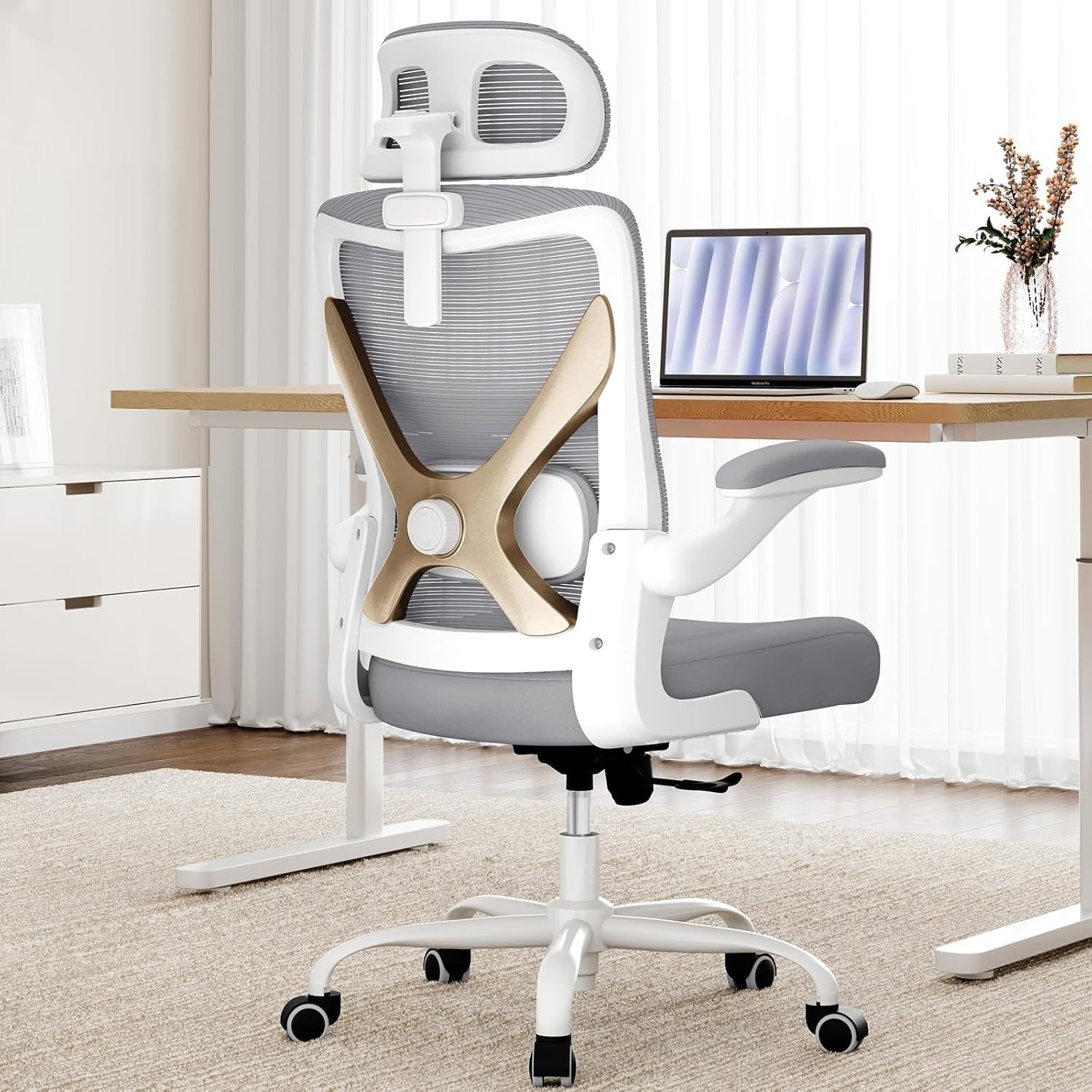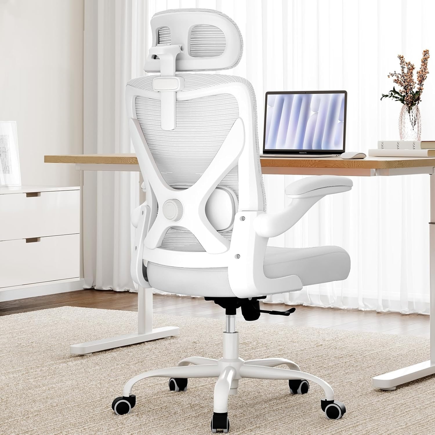Ergonomic Mesh Office Chair with Lumbar Support, Adjustable Headrest, and Flip-Up Armrests