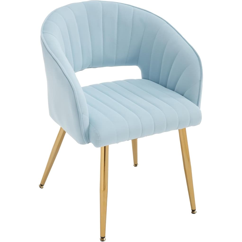Modern Velvet Upholstered Dining Chair with Gold Metal Legs and Hollow Back, Light Blue
