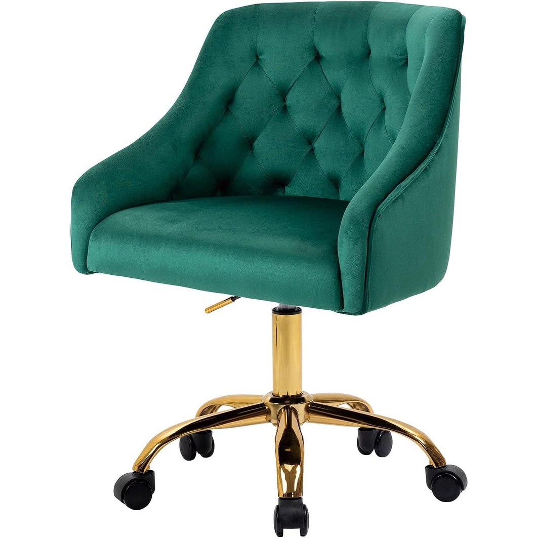 Velvet Upholstered Home Office Chair with Button Tufted Back, Adjustable Height, Tilt Function, Low-Back Desk Chair
