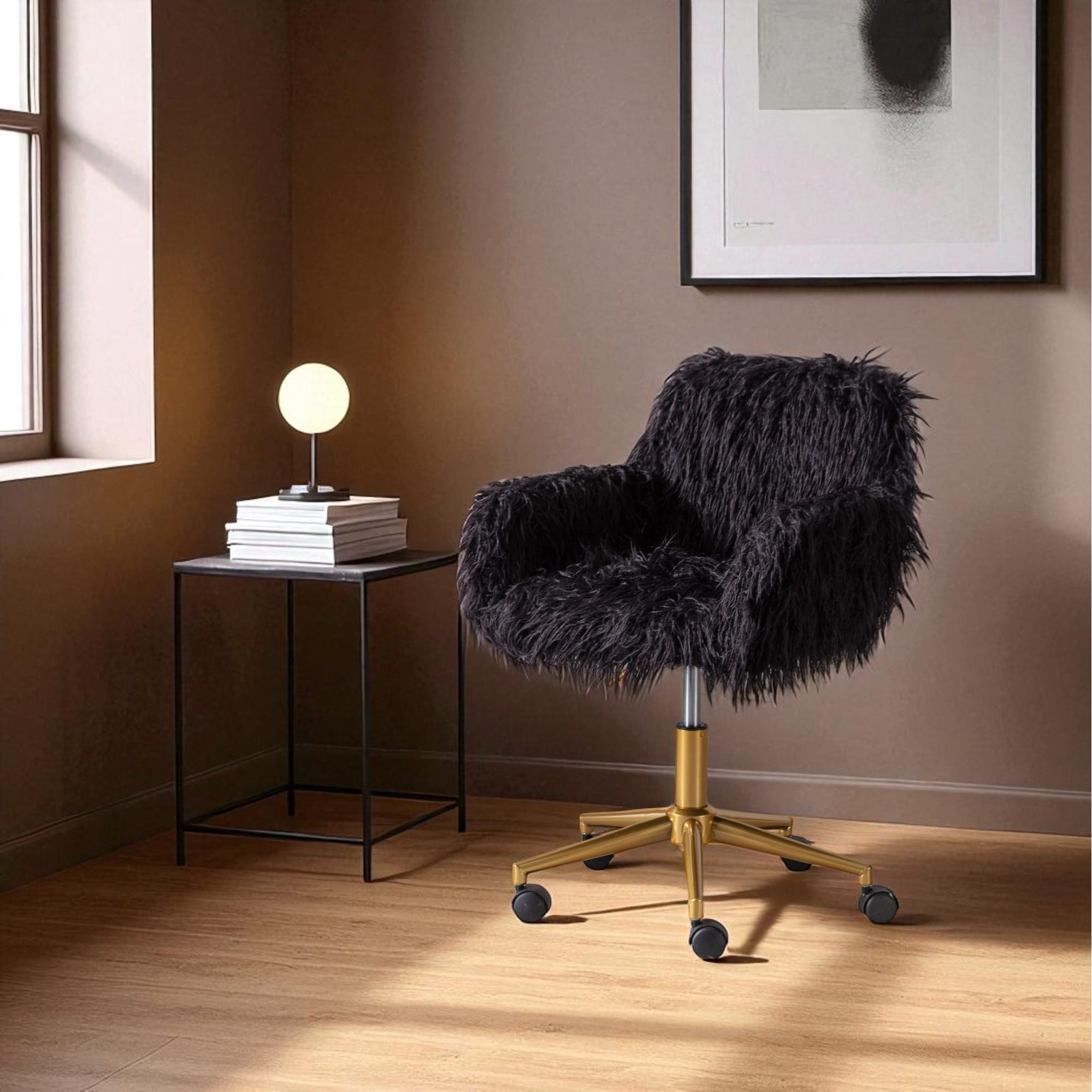 Modern Faux Fur Home Office Chair with Gold Base, Fluffy Vanity Chair for Girls, Adjustable Swivel Makeup Seat