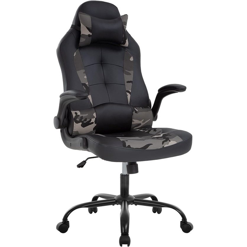 PU Leather Ergonomic Office Chair Gaming Chair with Lumbar Support Flip-Up Arms Headrest, for Adults, Women and Men, White