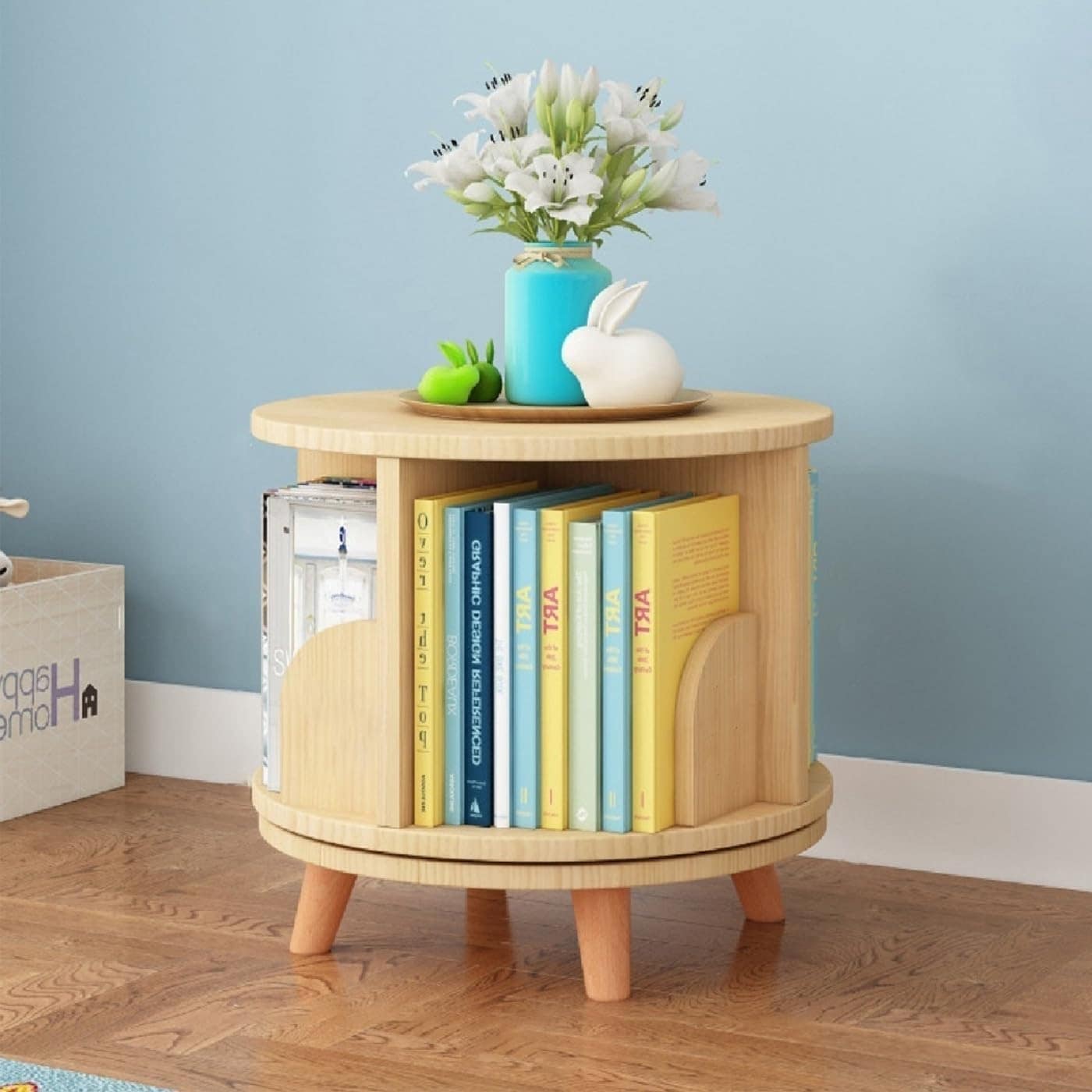 360° Rotating Wooden Bookshelf with Legs, Space-Saving Organizer for Home, Office, and Kids Room