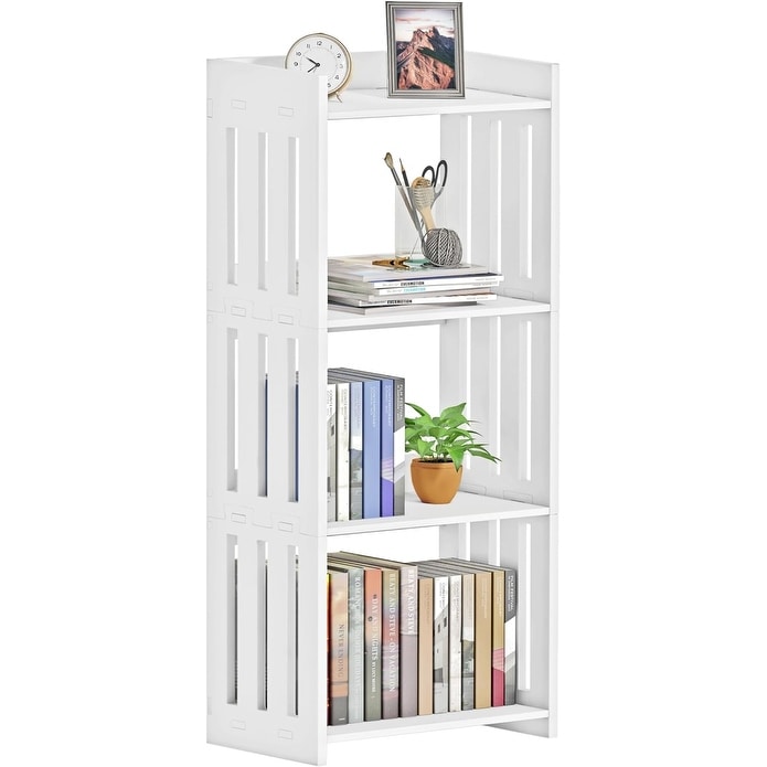 4-Tier White Bookshelf for Small Spaces, Compact Bookcase with Multipurpose Storage for Living Room, Office, Bedroom