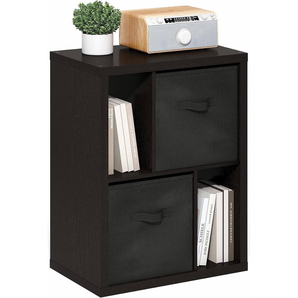 2-Tier Wooden Cube Shelf Bookcase with Base, Floor Standing Storage Cabinet for Home and Office, Walnut