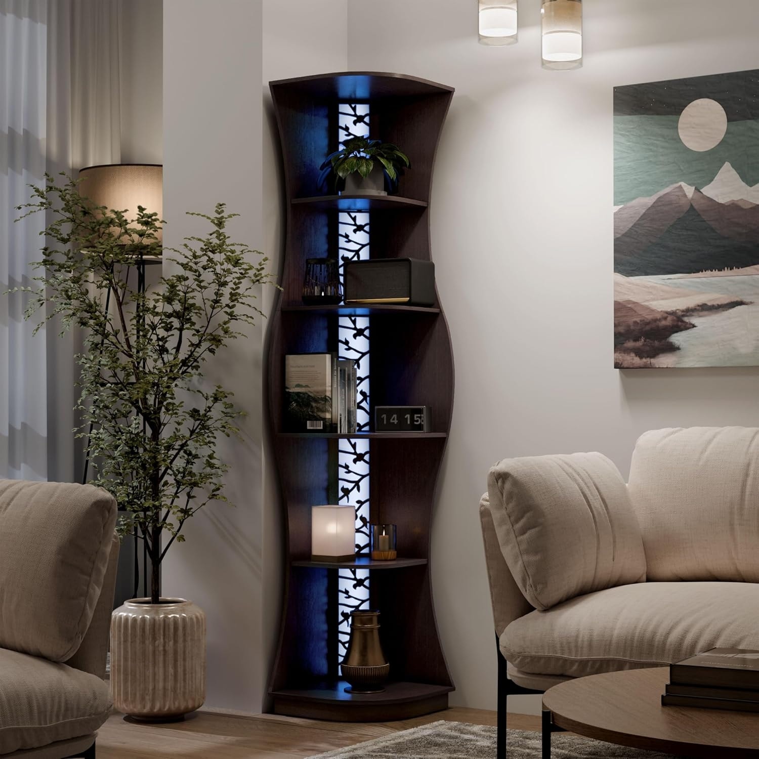 5 Shelf LED Bookcase with Remote, Cappuccino