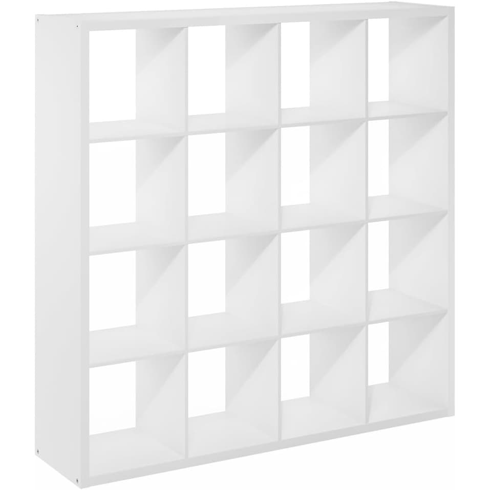 16-Cube Thick Frame Bookshelf, Reversible Bookcase with Open Back for Living Room, Bedroom, Home Office (White)