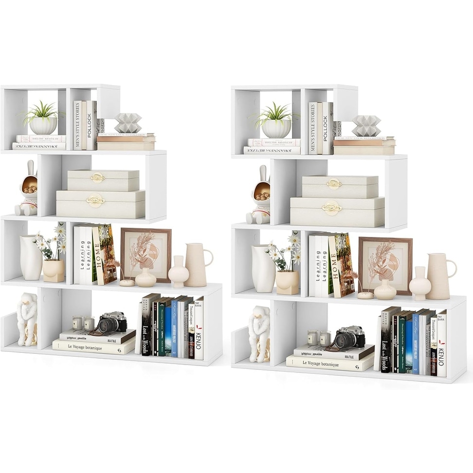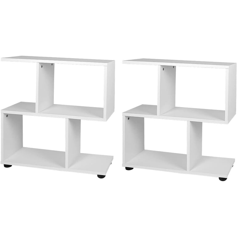 Set of 2 3-Tier Geometric Bookshelf, Wood S-Shaped, 24 inch Tall