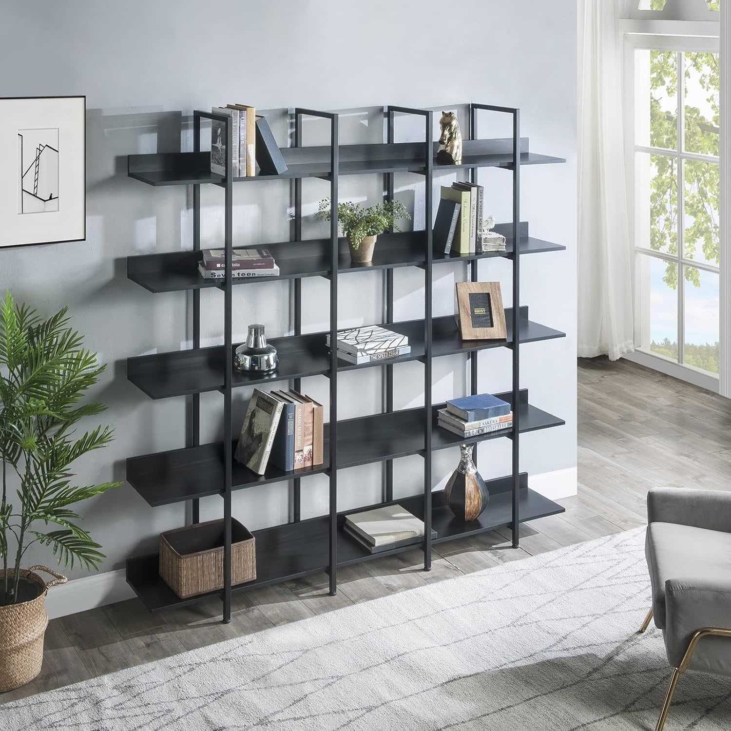 5-Tier Industrial Style Bookshelf for Rustic Decoration and Storage, Black