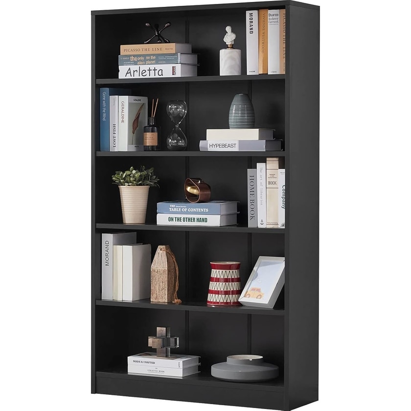 5-Tier Adjustable Modern Wood Bookshelf - 60 Inch Tall, Wide Bookcase for Bedroom & Living Room