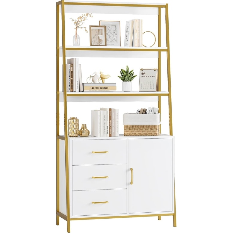 69 Inch Tall 4-Tier Bookcase with Wooden Drawers, Ladder Shelves, and Microwave Stand for Home Office