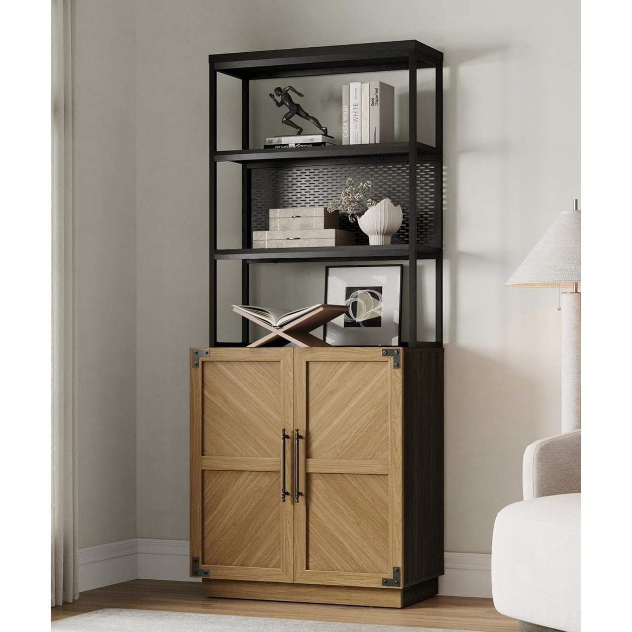 5-Tier Tall Bookshelf with Storage, Modern Freestanding Display Cabinet for Living Room, Home Office, Dining Room, Kitchen