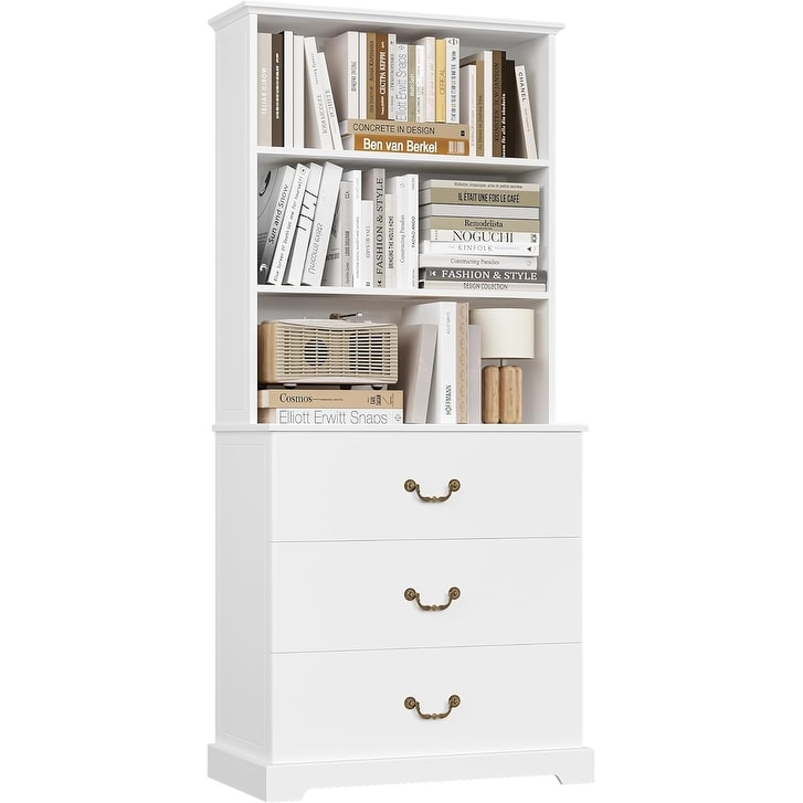 71 Inch White Bookshelf with Drawers, 31.5 Inch Wide Storage Cabinet for Home Office, Living Room, Kitchen, Bathroom