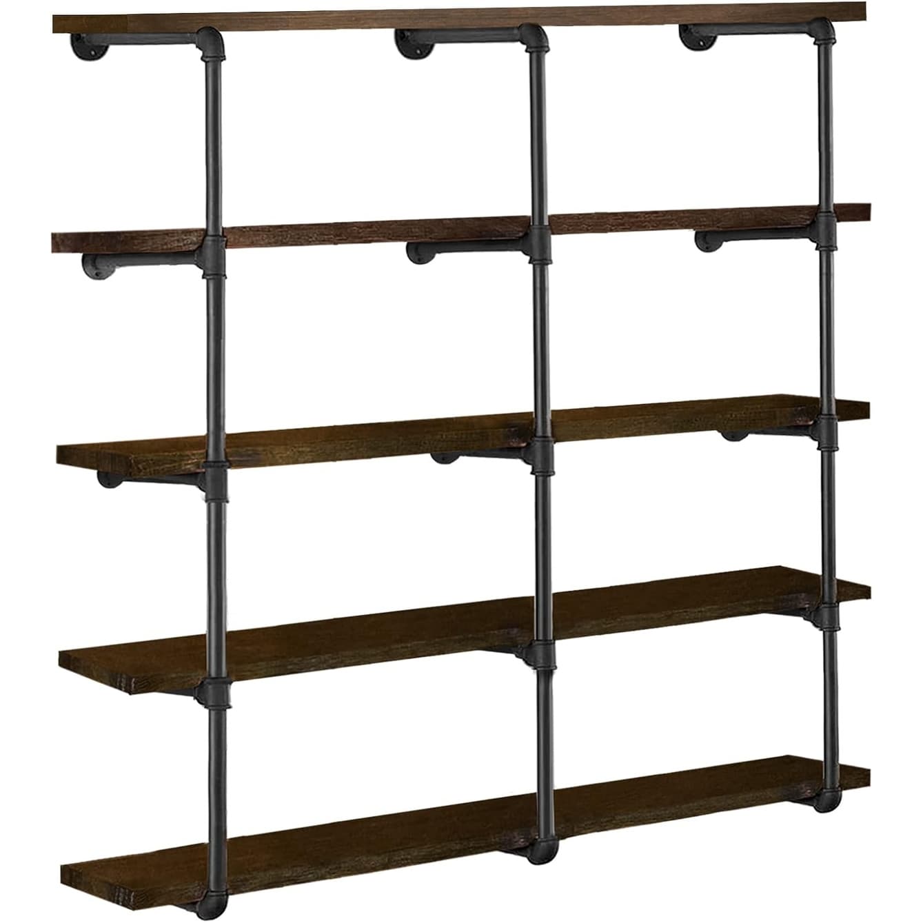 Industrial Iron Pipe Shelves, 5-Tier Open Bookshelf, Wall Mounted Vintage Storage for Pantry, Kitchen