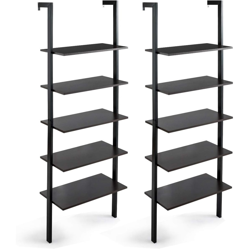 Modern 5-Tier Wall Mounted Ladder Bookshelf, Industrial Open Shelf Display Rack for Home Office, Dark-Brown