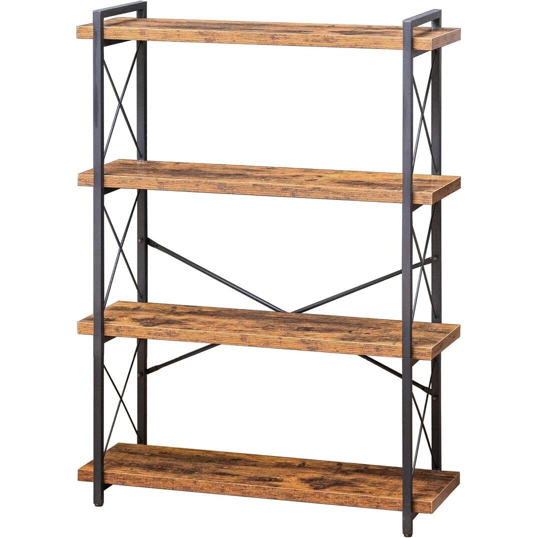 4-Tier Industrial Bookshelf with X-Shape Design, Durable & Stylish for Living Room, Home Office