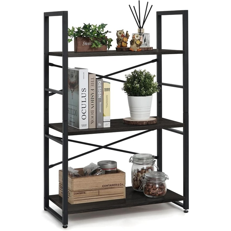 3-Tier Industrial Wood and Metal Bookshelf, Light Grey - Minimalist Design for Office, Living Room, Bedroom