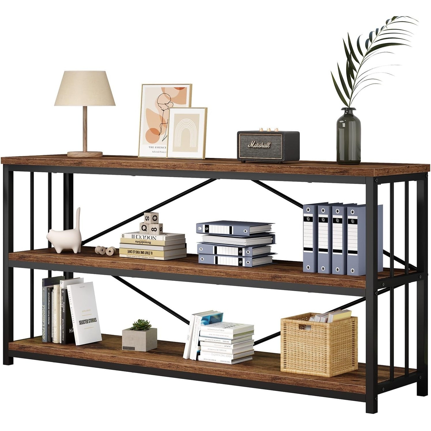 Rustic 3-Tier Industrial Wood Bookcase, Farmhouse Metal Etagere, Vintage Shelf for Home Office, Living Room, Bedroom, 63 Inch