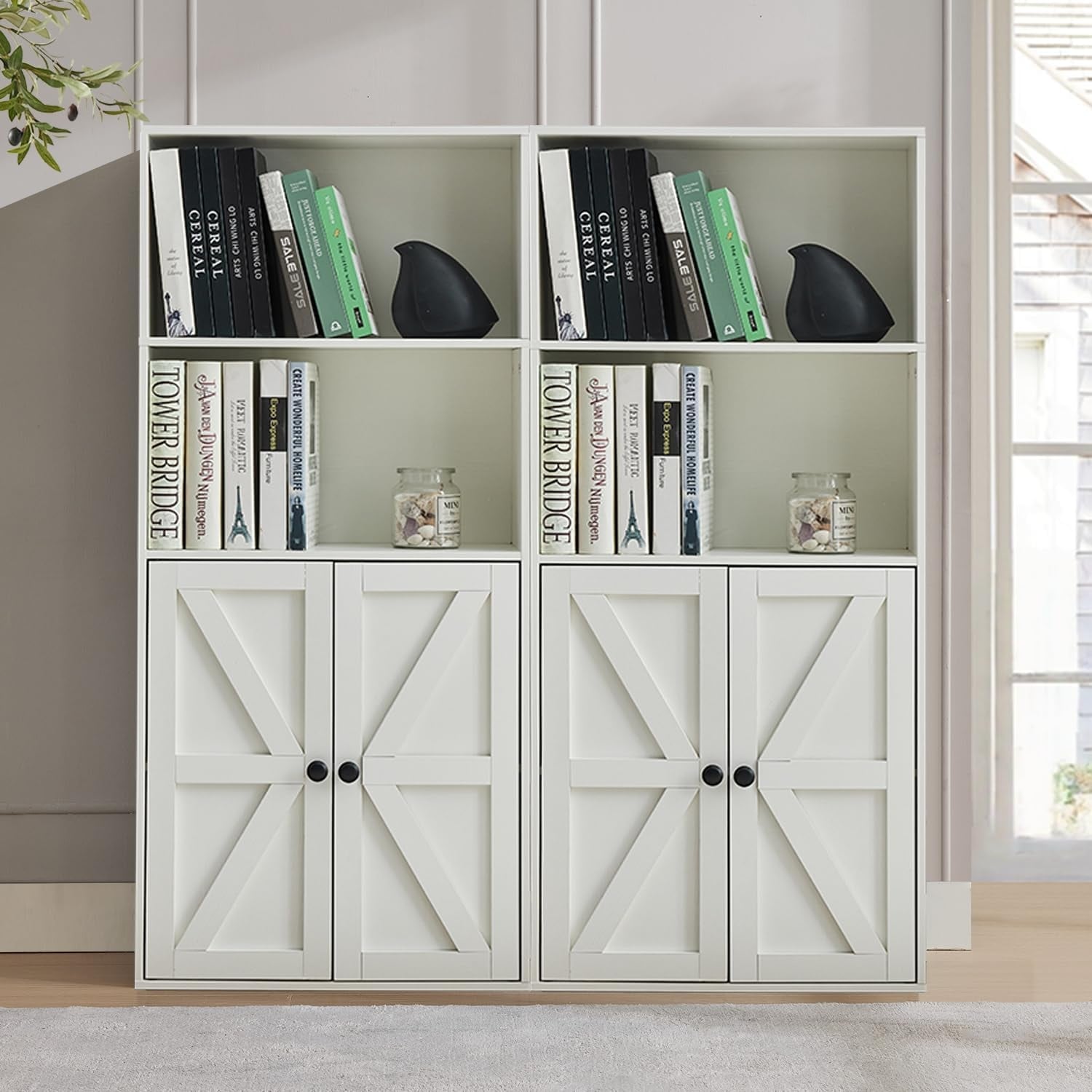 4-Tier Tall Wooden Bookshelf with Storage Cabinet and Farmhouse Design for Living Room or Home Office