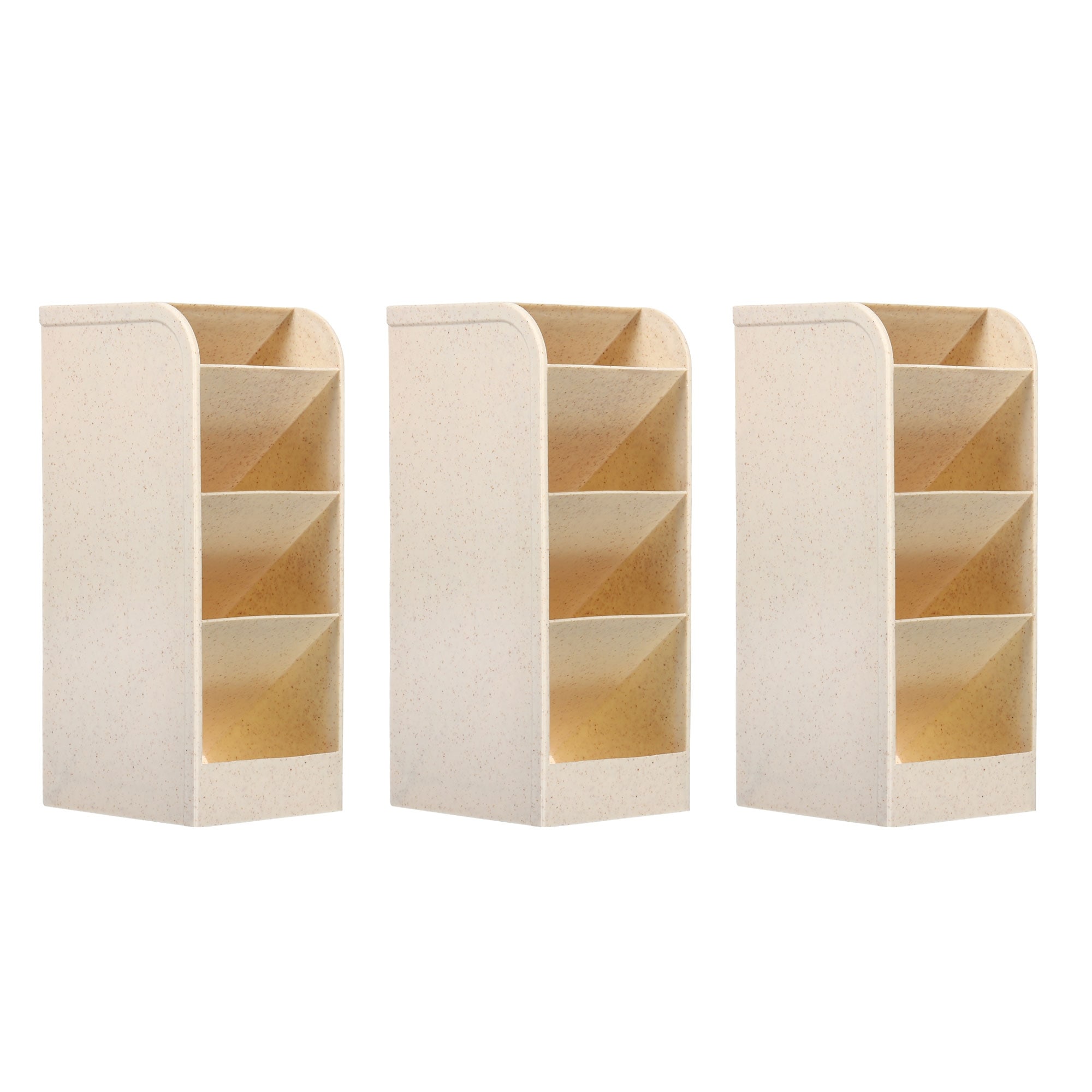 3pcs Pen Holders, Desk Organizer 4-Slot Pencil Stationery Storage Box, Beige