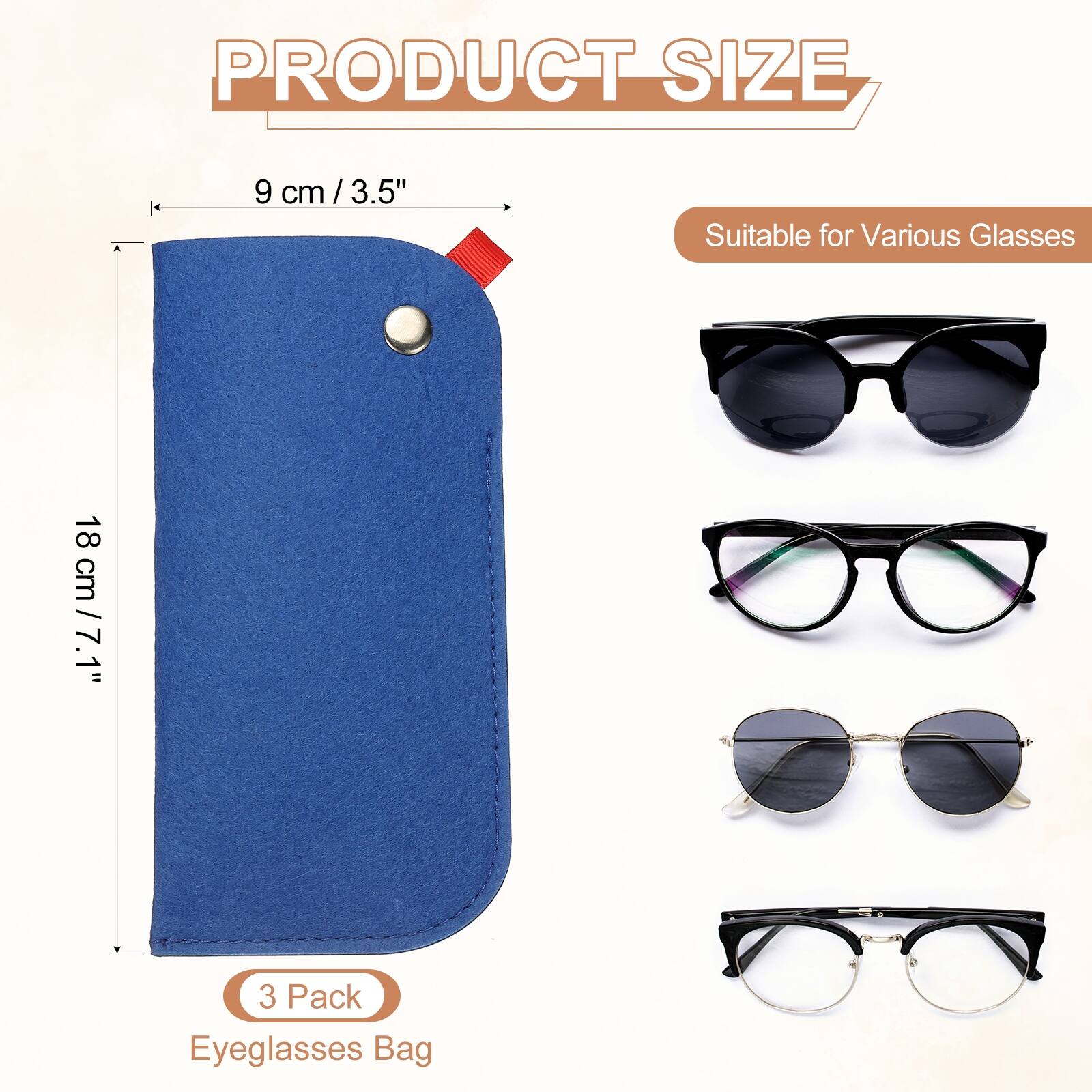 Portable Felt Glasses Case, Soft Slip-in Pouch Case, Ear Hanging Eyeglasses Bag Sunglasses Storage Pouch - 7.09 x 3.54 inch