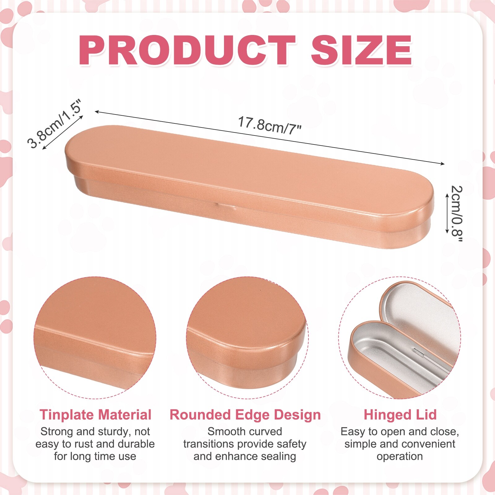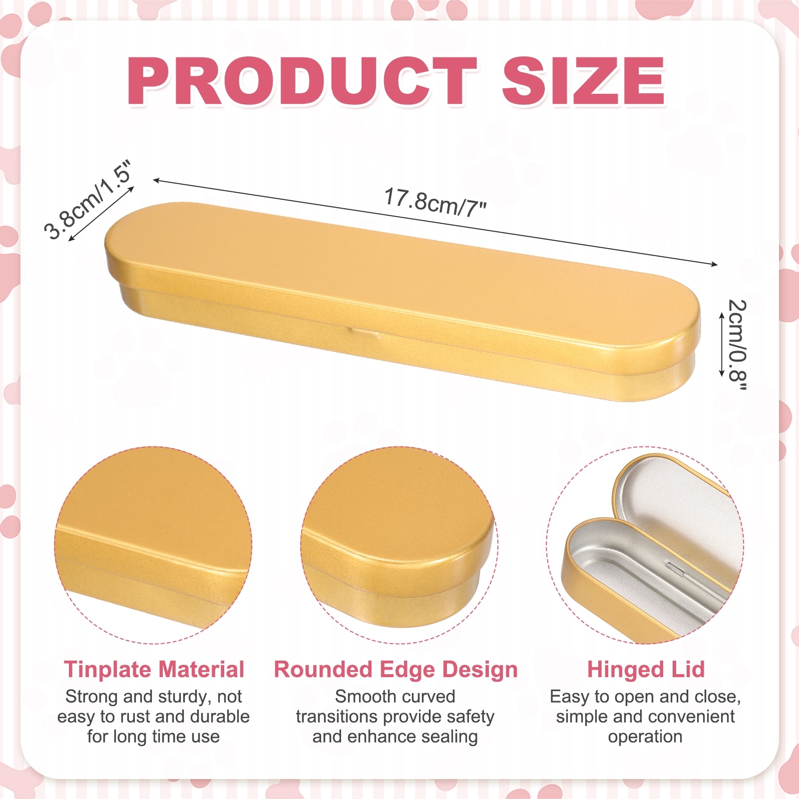 Metal Tin Box Container, Empty Hinged Lid Box Mini Portable Storage Containers for Candy Drawing Pin Crafts - 6.9x2.4x0.7 Inch