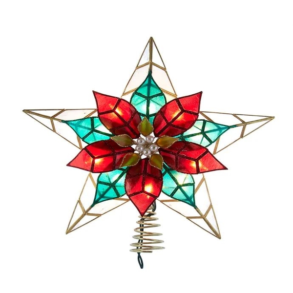 Kurt S. Adler 69558 - 10 Light 11.5" UL Capiz Gold Poinsettia Star Tree Topper