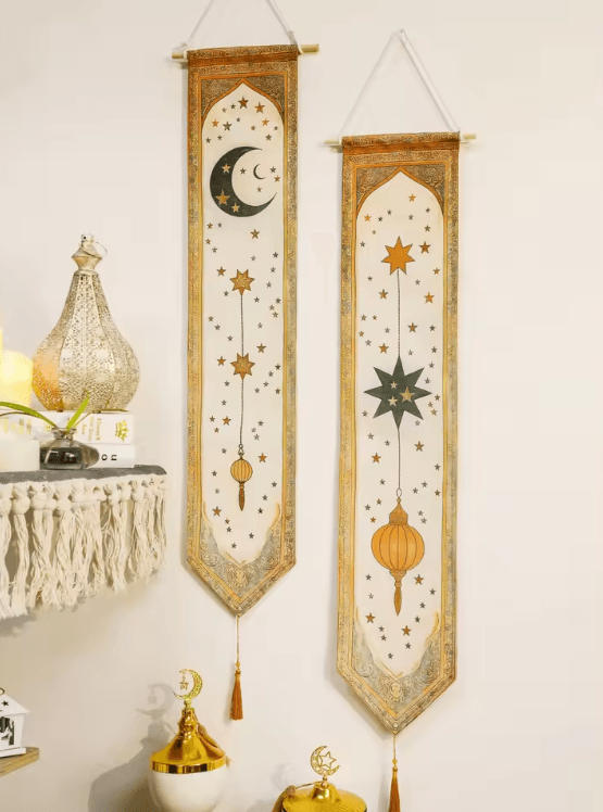 Eid Mubarak Ramadan Wall Banner Moon & Lantern Islamic Eid Decorations 2pcs M03104