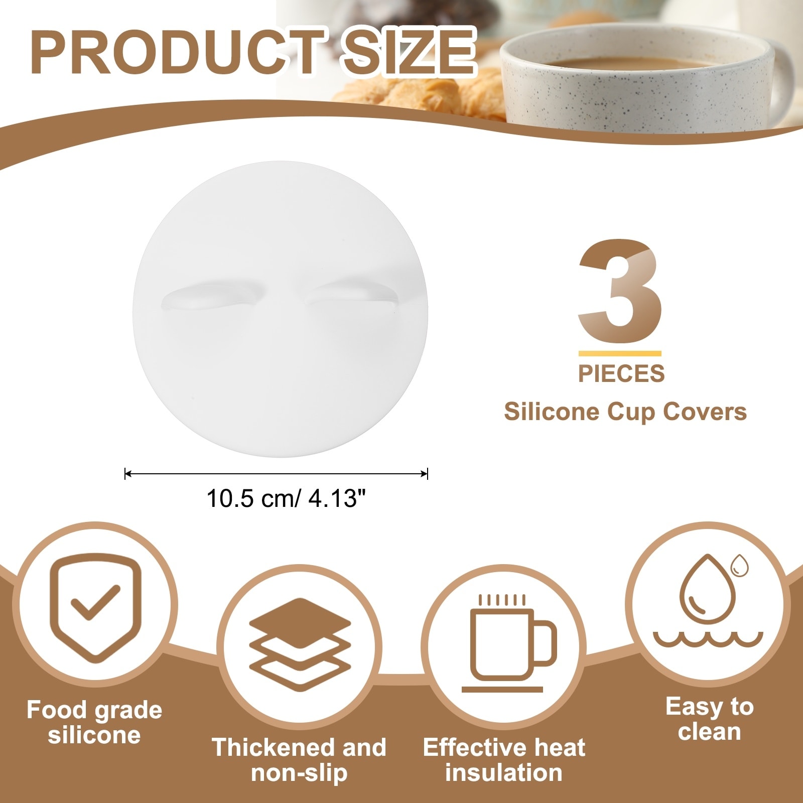 Silicone Cup Lids, Cat Ear Universal Cup Lids for Mugs, Tea Cups, Coffee Cups, Dust-proof Reusable - 3Pcs, 4.1 Inch