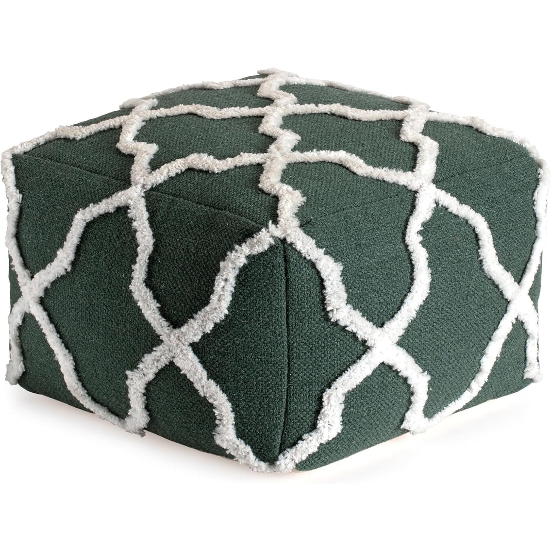 Handmade Comfortable Pouf Ottoman Footrest for Living Room, Bedroom, Nursery - 22" x 22" x 16", Green/Ivory