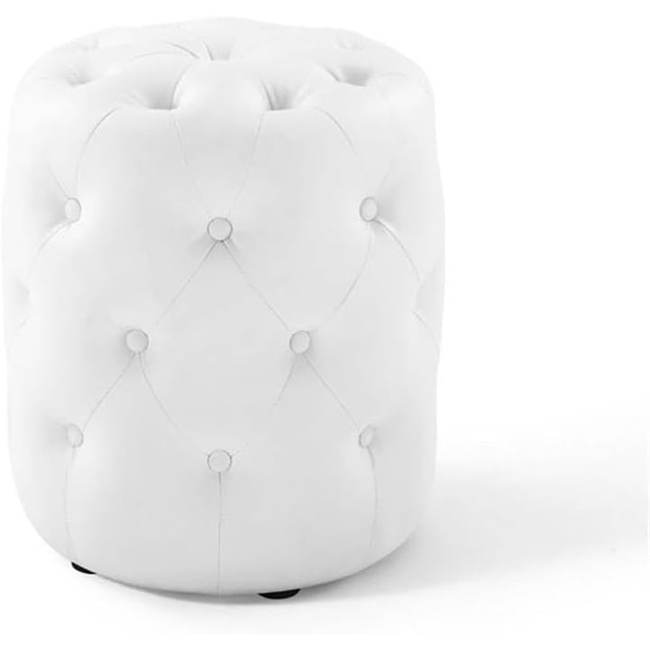 EEI-3777-WHI Anthem Tufted Button Round Faux Leather Ottoman, White, Round Ottoman