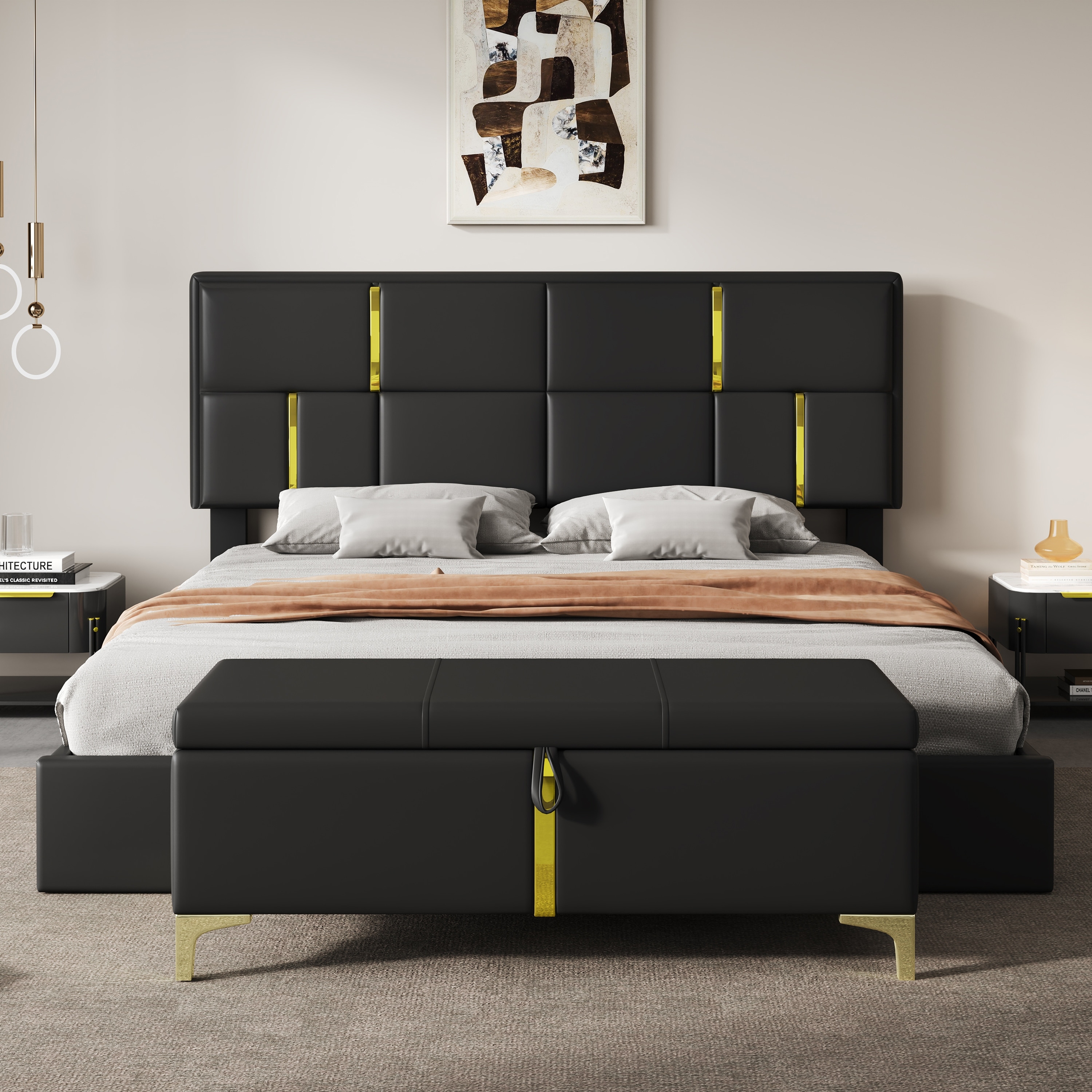 2-Pieces Bedroom Sets,Queen Size Upholstered Platform Bed with Hydraulic Storage System,Storage Ottoman with Metal Legs,Beige