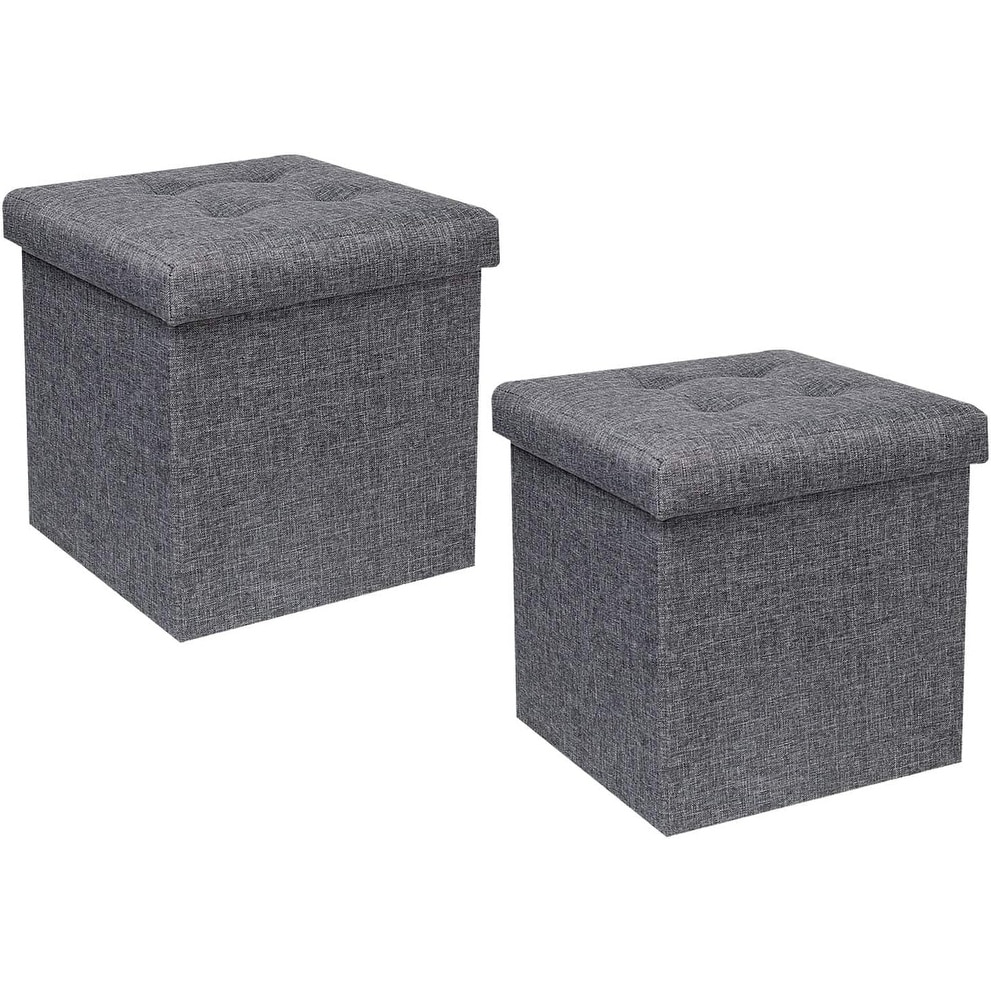 Storage Ottoman Cube, Storage Chest Folding Foot Rest Seat, Linen Grey 12.6"X12.6"X12.6" (2 Pack)