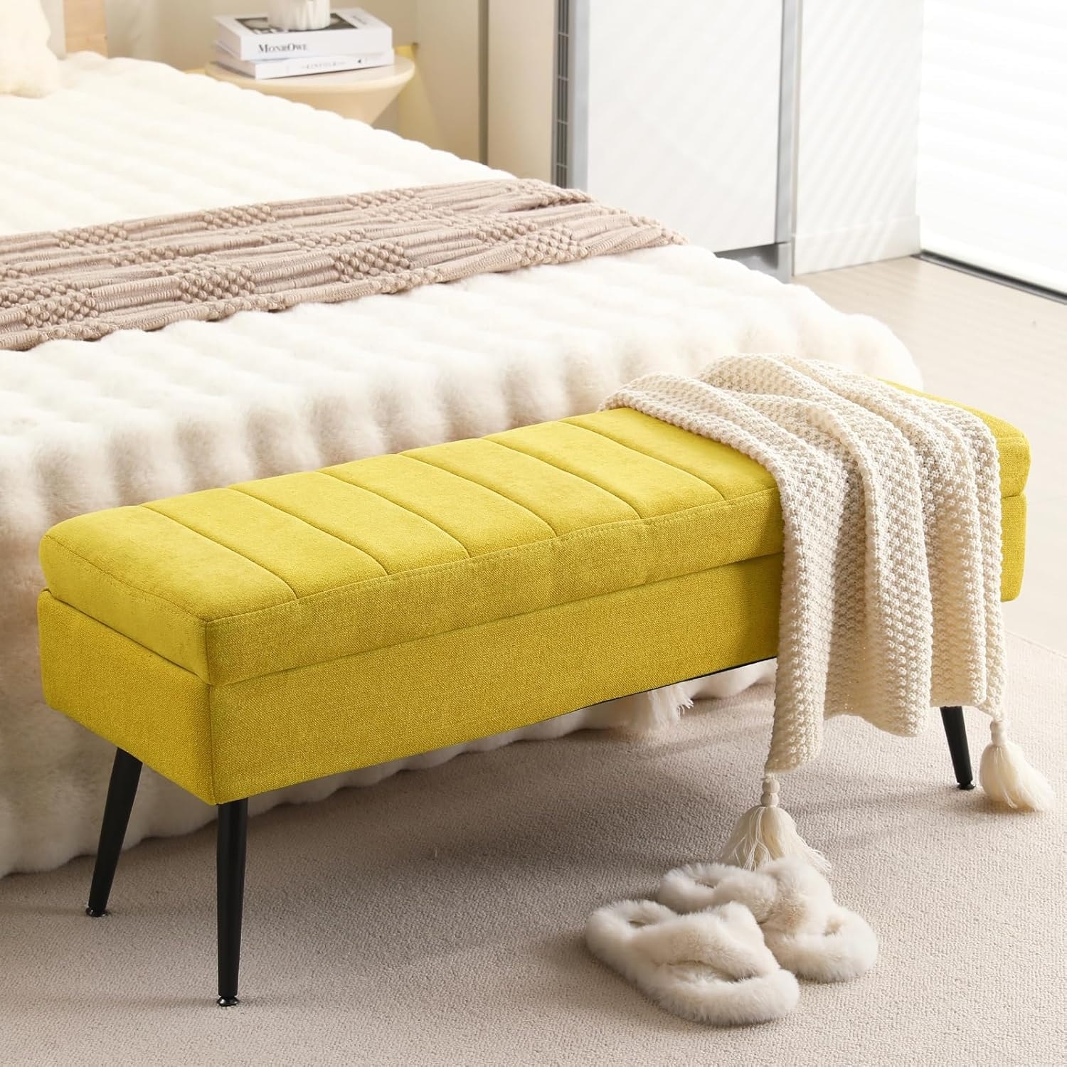 Storage Ottoman Bench, 43.5" Upholstered Entryway Bench with Storage for Living Room, Supports 660lbs - Fabric