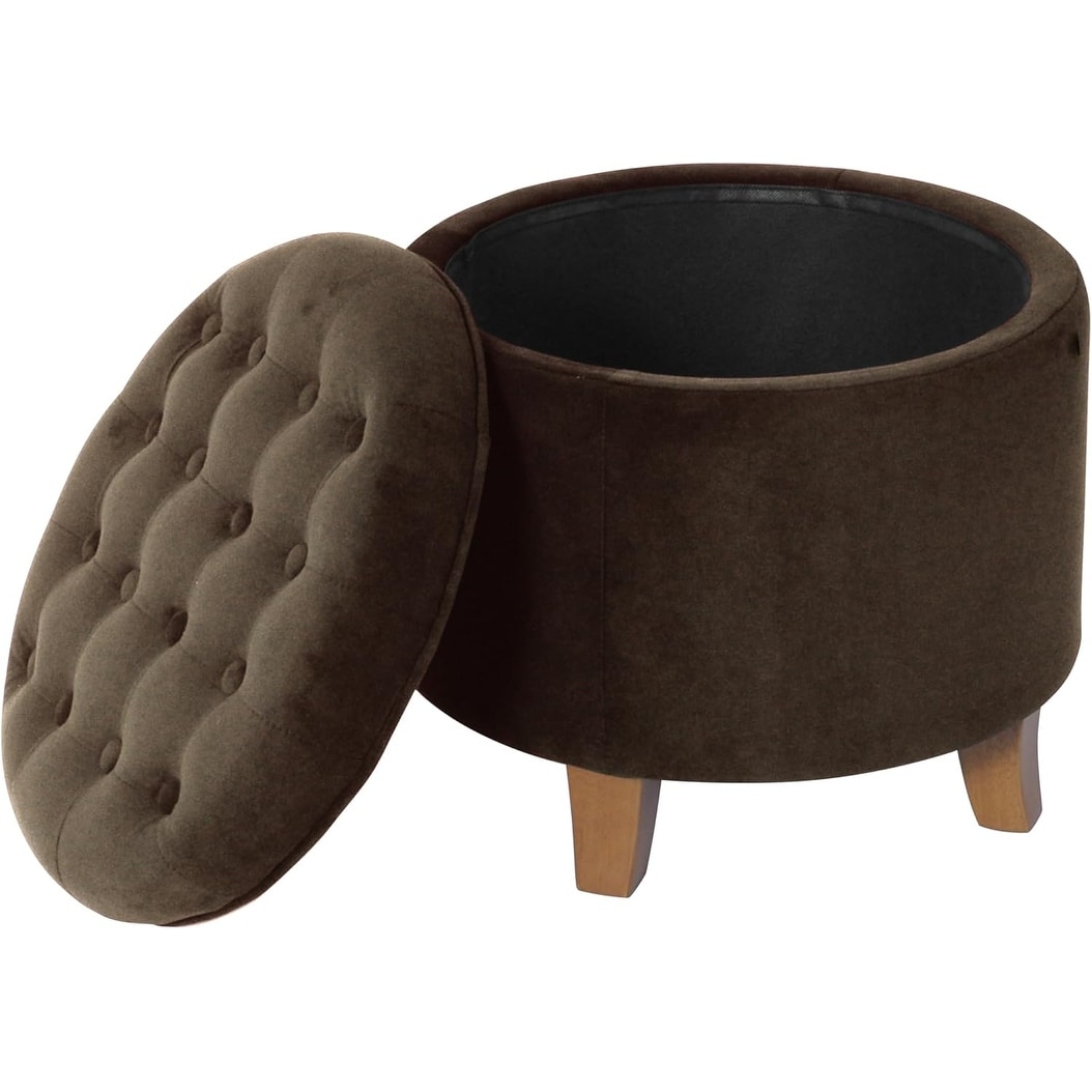 Upholstered Round Velvet Tufted Foot Rest Ottoman with Storage - Brown