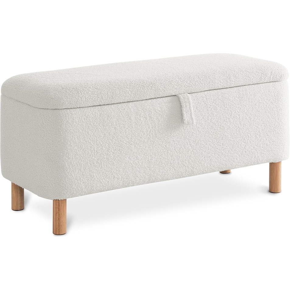 Storage Ottoman Bench for Bedroom, Living Room, Entryway - Padded Rectangle Cushion Shoe Seat with Sherpa Lining, White