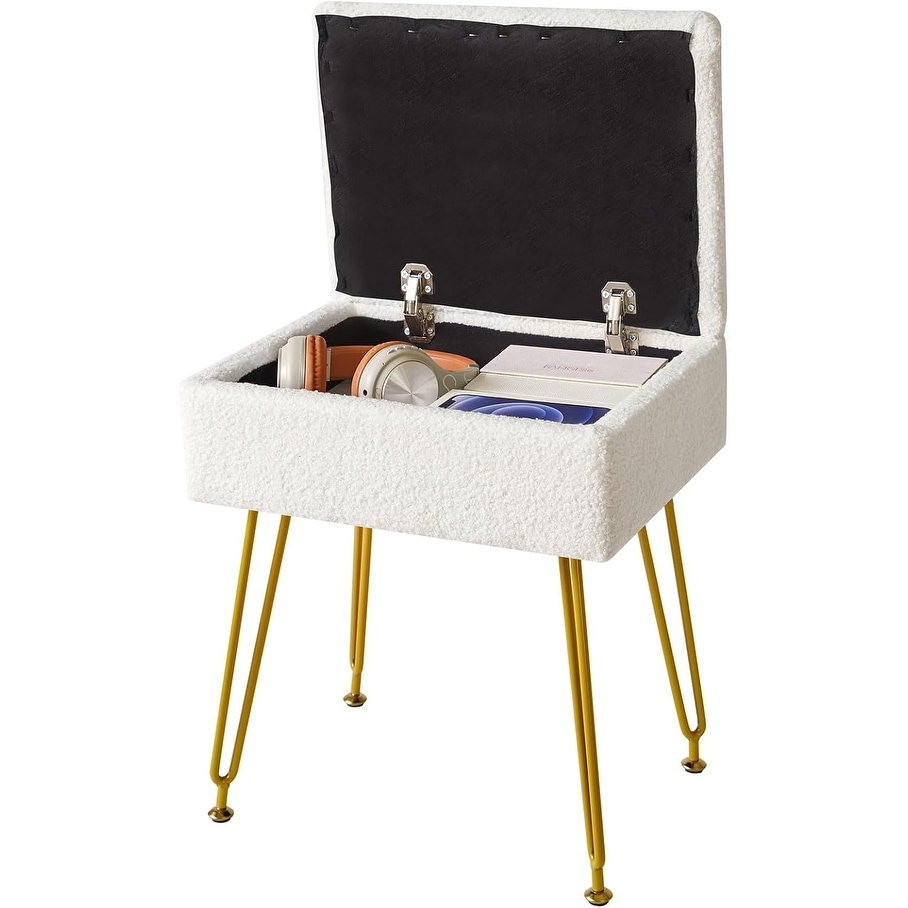 Stool with Storage, Square Vanity Chair, Soft Padded Seat for Bedroom or Living Room, 15.74" D × 11.81" W × 18.5" H, White