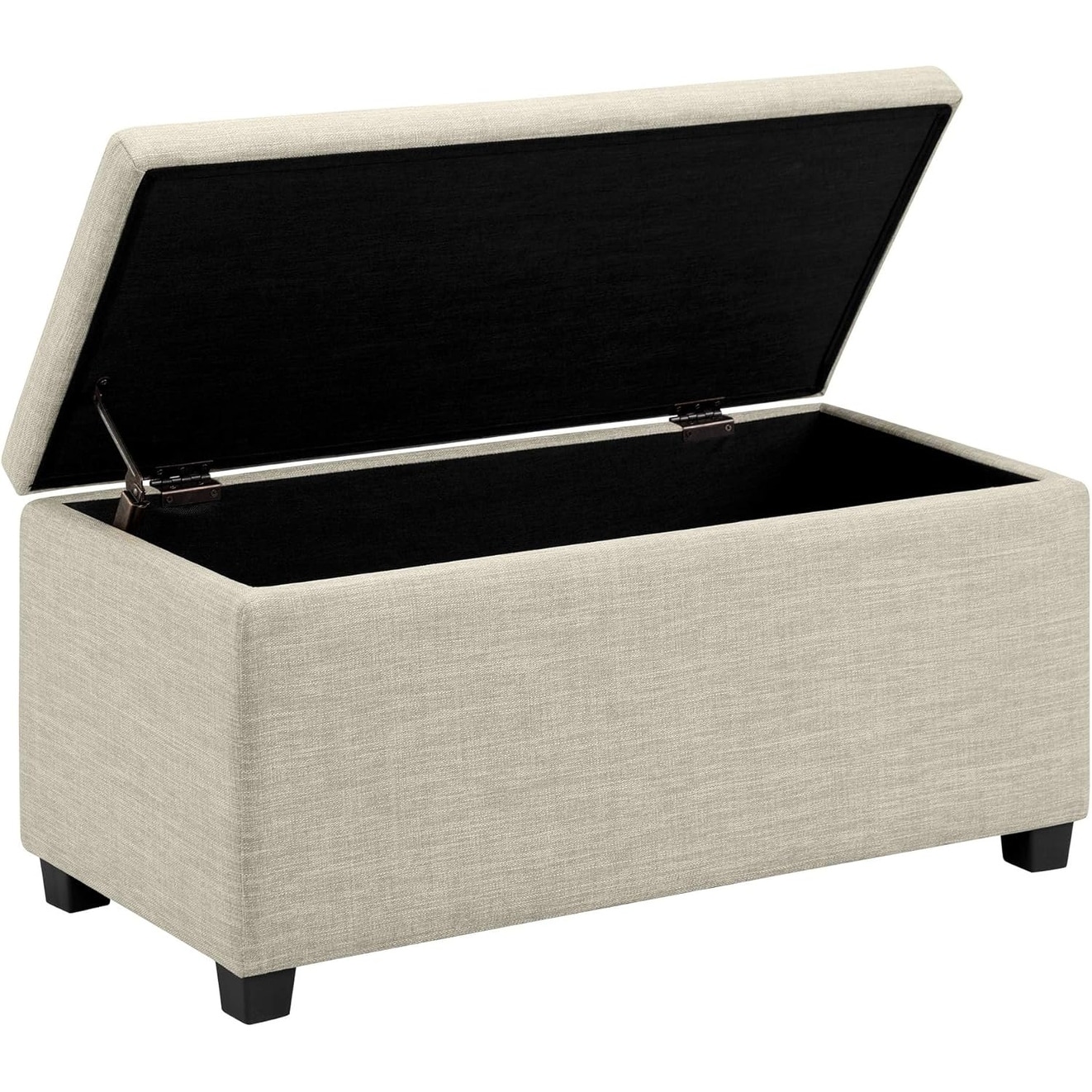 Upholstered Storage Rectangular Ottoman and Entryway Bench, Polyester, Beige, 35.5"W x 16.5"D x 17"H